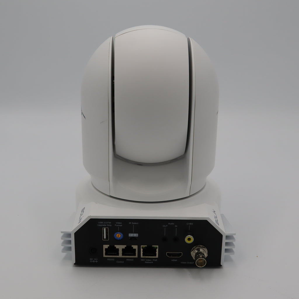 The BirdDog Eyes P200 is a professional‑grade PTZ camera optimized for live production environments, streaming, and broadcast workflows. With a high‑performance Sony backlit 1/2.8″ CMOS sensor and a true 30× optical zoom (4.3–129mm), it delivers sharp Full HD (1920×1080) images at up to 60 fps via its full‑NDI® output (≈140 Mb/s), alongside simultaneous HDMI and 3G‑SDI outputs. The unit supports remote control via NDI, VISCA, Pelco‑D, RS‑232/422/485 and features 128 preset positions, PoE+ support, and versatile mounting options. This white‑housing version (BDP200W) is ideal for corporate, education, or house‑of‑worship integration where a lighter aesthetic is desired. While used, it remains a powerful tool for NDI‑based workflows at a more accessible price point.