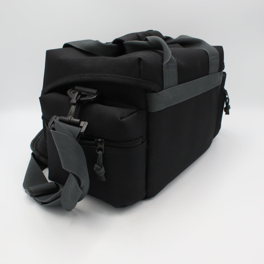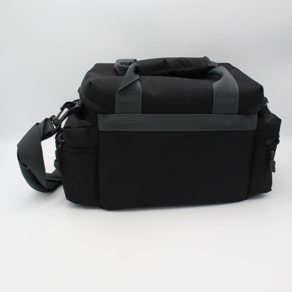 The Canon 300-DG makes a great fit for storing a DSLR along with 2-3 lenses and some accessories. The four Velcro dividers allow you to fully customize the interior of the case, and the firm exterior ensures that your gear will be protected. The three external pouches, two on the sides and one up front, allow for more room for accessories or media sticks. The adjustable shoulder strap allows you to access contents without having to take it off.