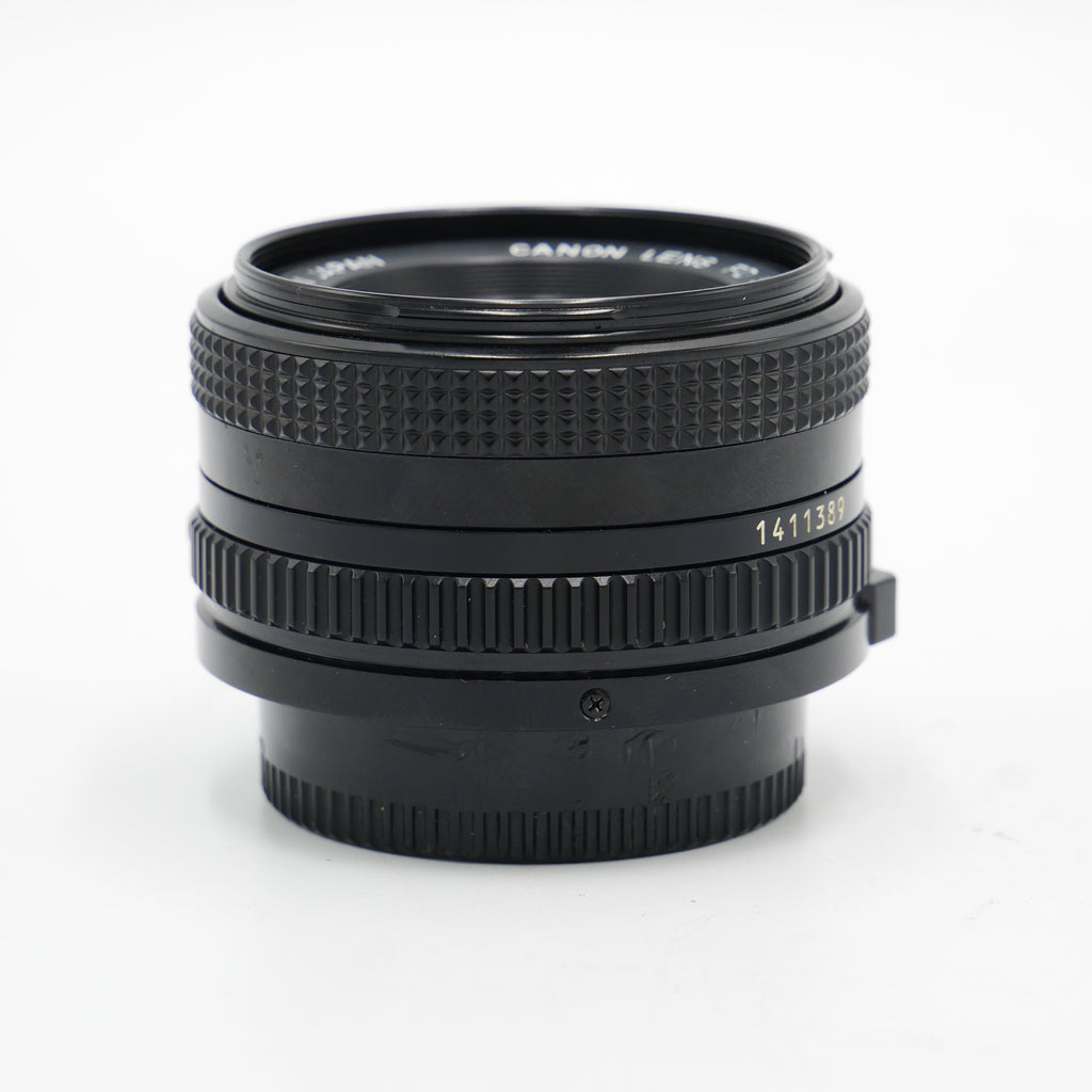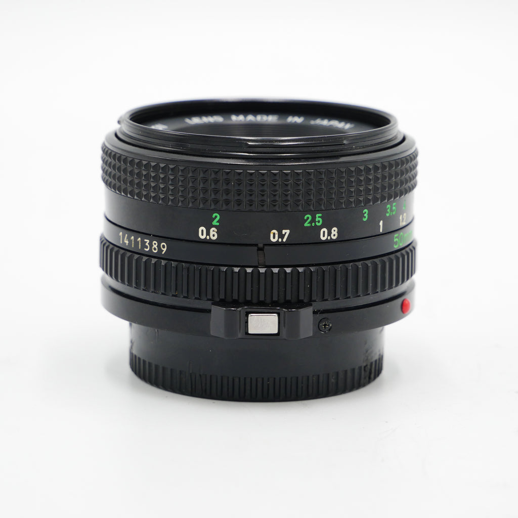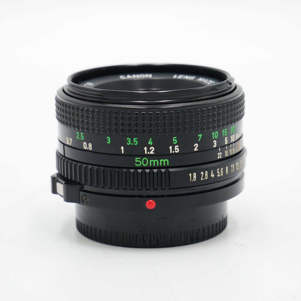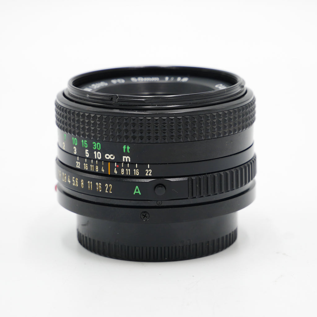 The FD 50mm f/1.8 is a standard lens designed for late model Canon manual focus SLR cameras. The 50mm f/1.8 FD is a perfect companion lens for Canon A series and T series bodies. With a 'normal' angle of view the 50mm is not considered wide or telephoto but rather an in-between general purpose lens. The bright f/1.8 maximum aperture allows for easier focusing and faster shutter speeds while shooting with available light as well as the potential to blur background more than typical zooms. Because it offers great contrast and sharpness and good potential for shallow depth of field experimentation, the 50mm 1.8 FD is an extremely good choice as a first lens for photography students. The same qualities have also made it popular with practiced enthusiasts as an alternative to more expensive f/1.4 options.