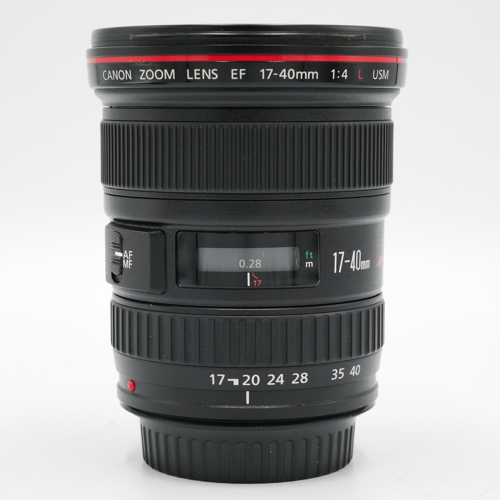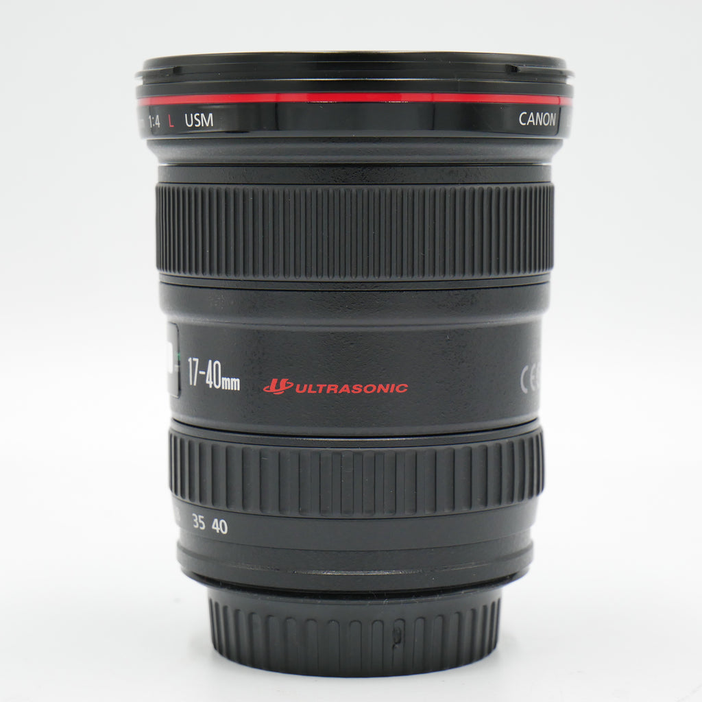 Spanning a versatile wide-angle range, the EF 17-40mm f/4L USM Lens is a Canon L-series zoom featuring a constant f/4 maximum aperture along with a sophisticated optical design and durable construction. One Super UD element is featured, along with three aspherical elements, which help to reduce both chromatic and spherical aberrations in order to realize high sharpness, clarity, and color accuracy. A Super Spectra coating has also been applied to suppress flare and ghosting for improved contrast in difficult lighting conditions. Complementing the imaging capabilities, this wide-angle zoom also features a ring-type USM and internal focusing mechanism to afford quick, quiet, and accurate autofocus performance, as well as full-time manual focus override. Additionally, this lens is weather-sealed for use in trying environmental conditions.