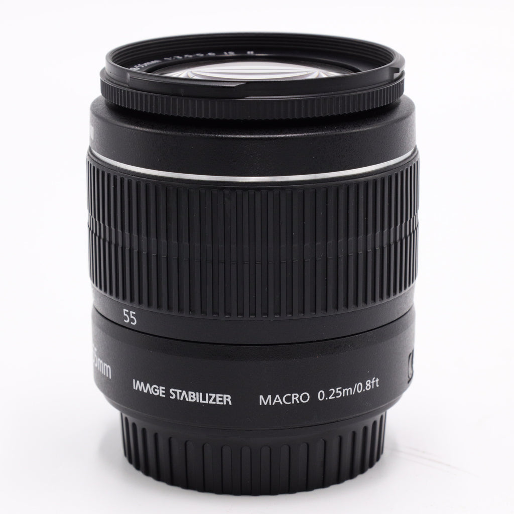 Compact, lightweight, and versatile, the EF-S 18-55mm f/3.5-5.6 IS II from Canon is a standard zoom offering a 28.8-88mm equivalent focal length range. One aspherical element is featured in the lens design and helps to control spherical aberrations and distortion throughout the zoom range for consistent sharpness and clarity. A Super Spectra coating has also been applied to individual elements to control flare and ghosting for increased contrast and color accuracy in all lighting conditions. Complementing the imaging capabilities is a four-stop-effective Image Stabilizer system that minimizes the appearance of camera shake for sharper handheld shooting. Additionally, a Micro Motor autofocus system delivers quick focusing performance and a minimum focusing distance of 9.8" is available at all focal lengths for close-up shooting.