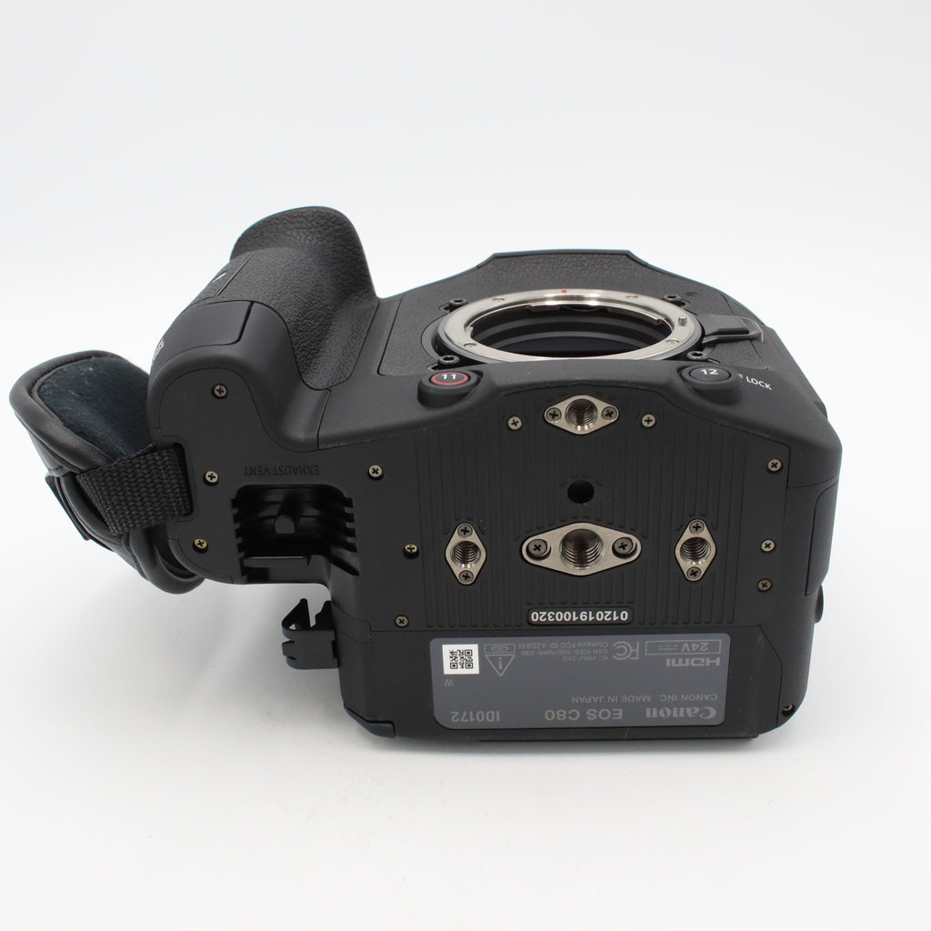 | In The Box | Canon EOS C80 6K Full-Frame Cinema Camera (Canon RF), Canon BP-A30N Battery Pack, Handle Unit, Canon CA-CP300B Compact Power Adapter/Charger for EOS C400, Canon Single Battery Charger for EOS C300 Mark II, C200, and C200B Batteries, Microphone Holder, SS-1200 Shoulder Strap, Tape Measure Hook, Grip Belt |