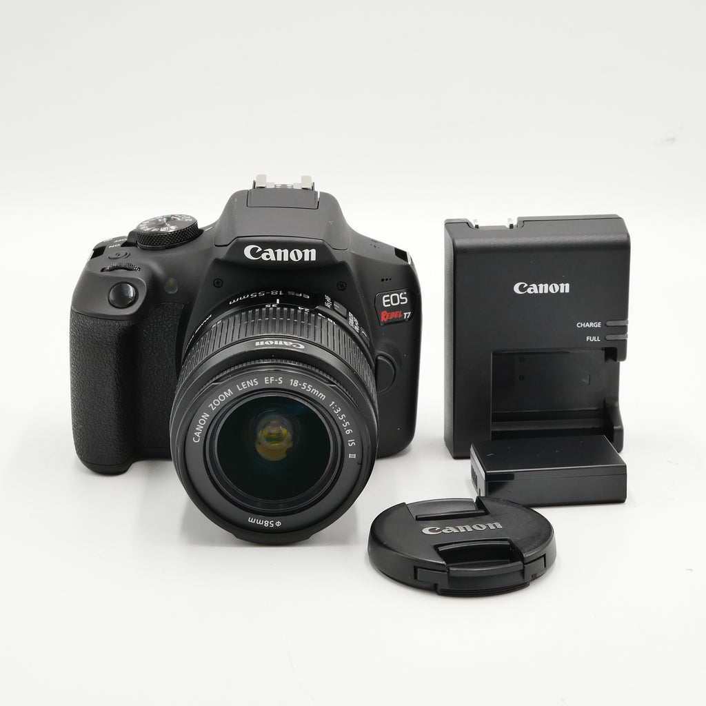 | In The Box | Canon EOS Rebel T7 (Body Only), Canon EF-S 18-55mm f/3.5-5.6 IS II Lens, Canon LP-E10 Lithium-Ion Battery Pack, Canon LC-E10 Battery Charger, Canon Eyecup EF, Canon RF-3 Body Cap for Canon EOS Cameras, EW-400D Neck Strap, Battery Cover |