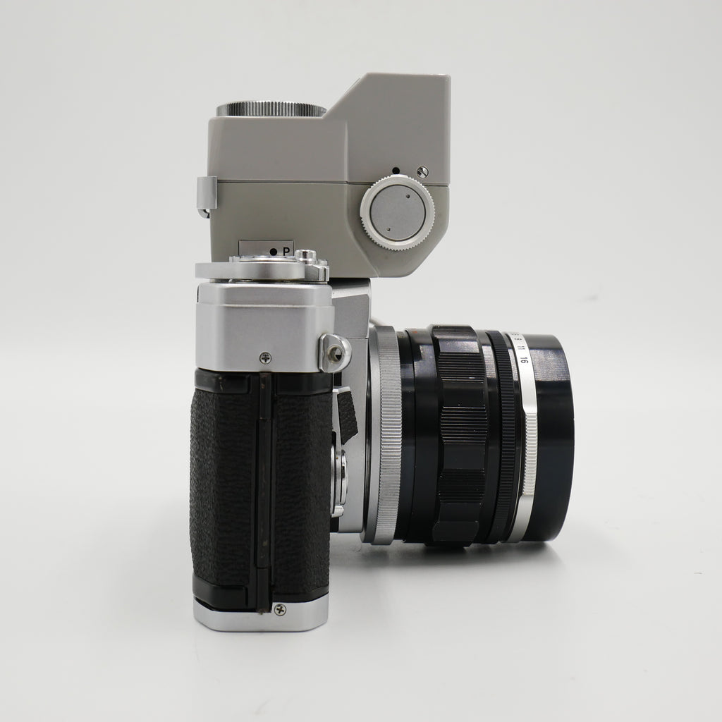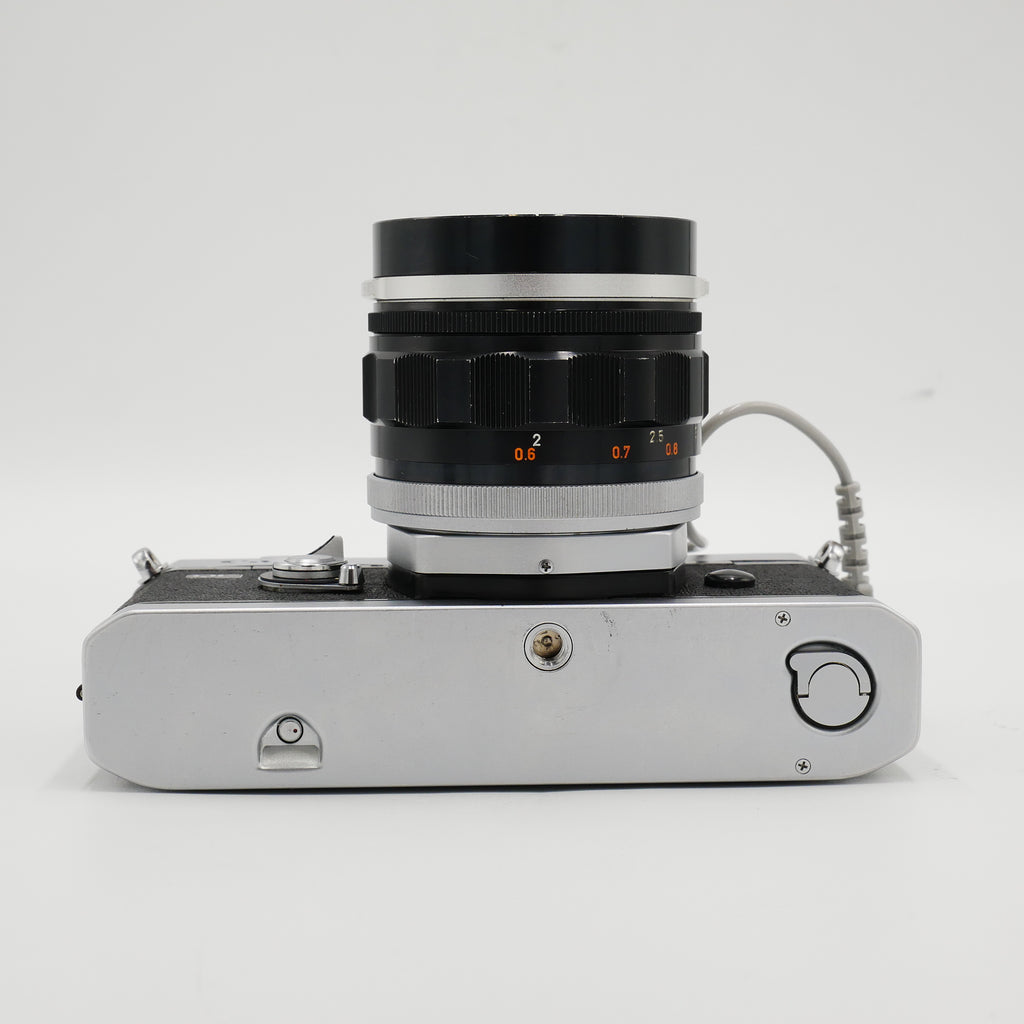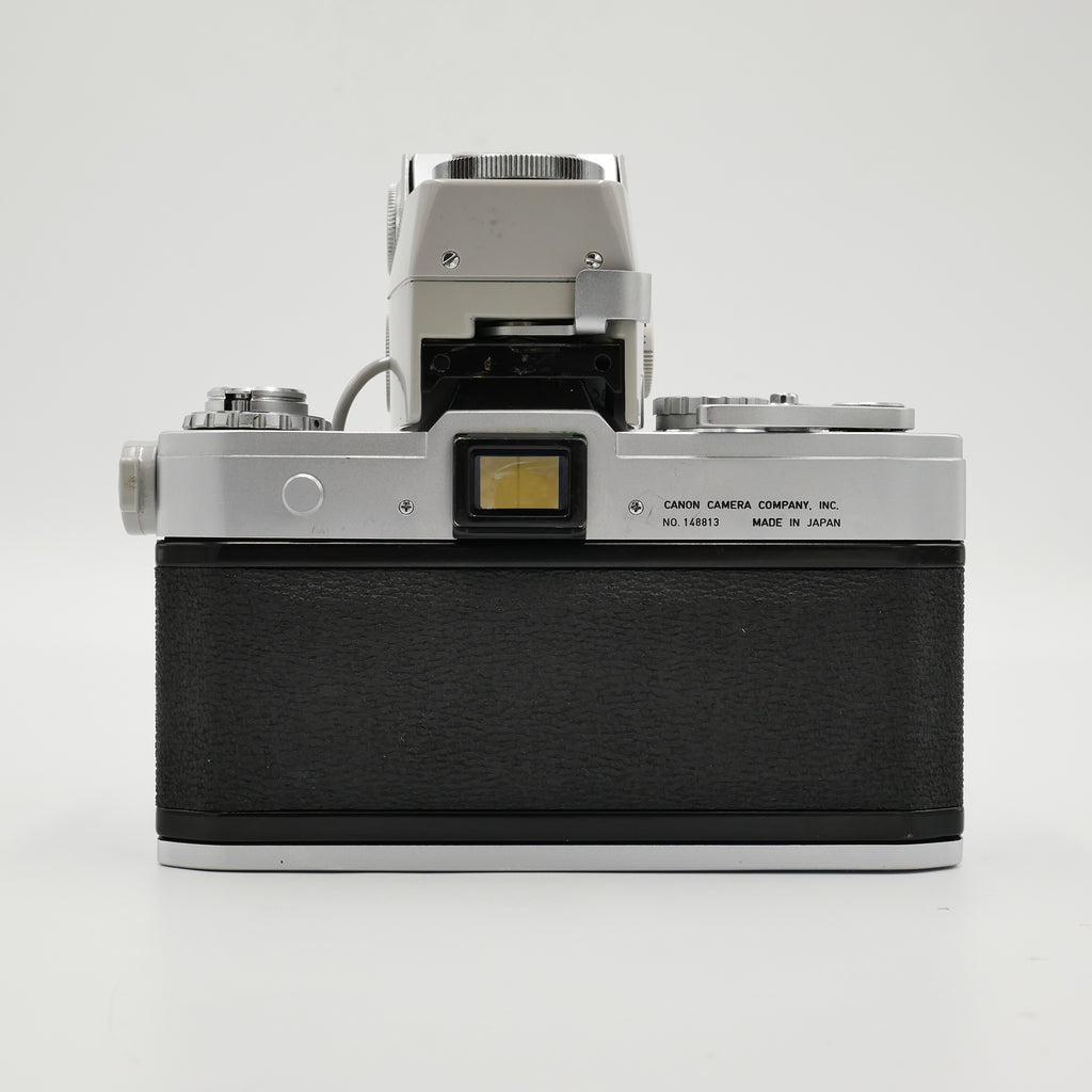 Paired with this body is the Canon FL 58mm f/1.2, a legendary "fast" lens renowned for its specialized optical character and low-light performance. Featuring seven elements in five groups, this lens is highly sought after for its "dreamy" aesthetic and swirly bokeh when shot wide open at f/1.2. Because the Pellix's fixed mirror absorbs approximately 0.5 to 0.7 stops of light, the f/1.2 maximum aperture is a vital asset, helping to maintain a bright viewfinder image that would otherwise be dimmed by the pellicle design. The lens utilizes a robust breech-lock mount and is constructed with heavy-duty metal barrels, reflecting the professional standards of the 1960s.