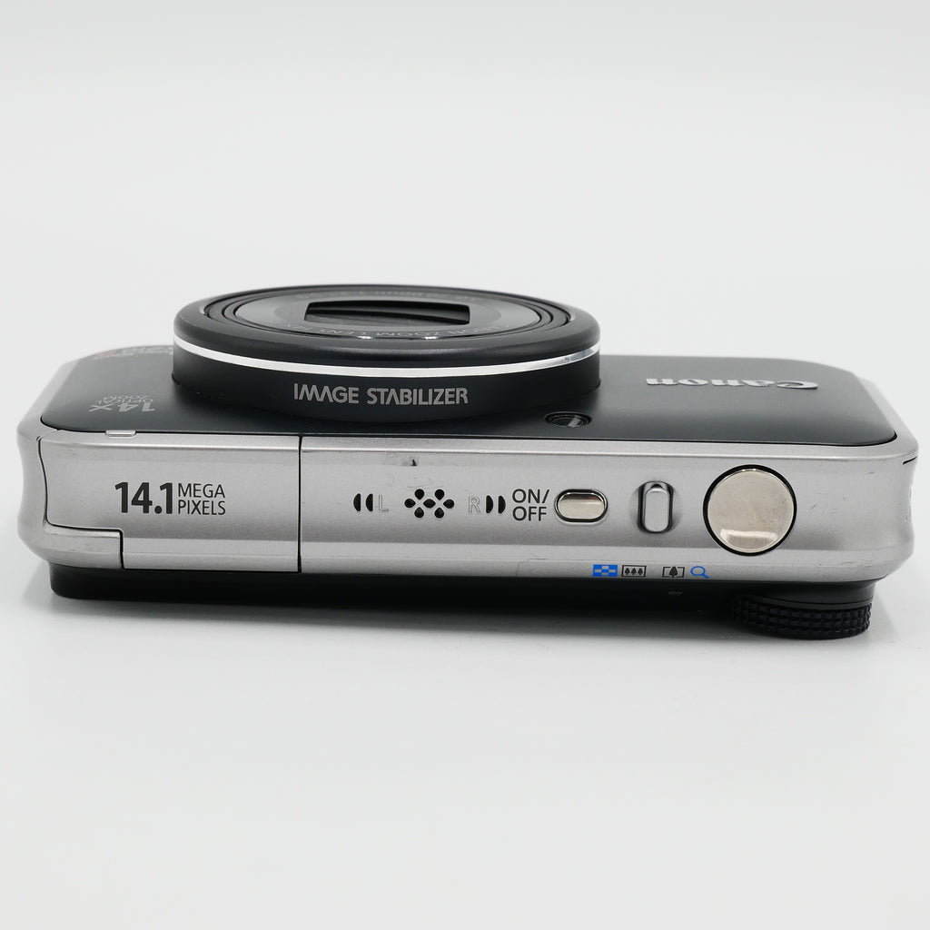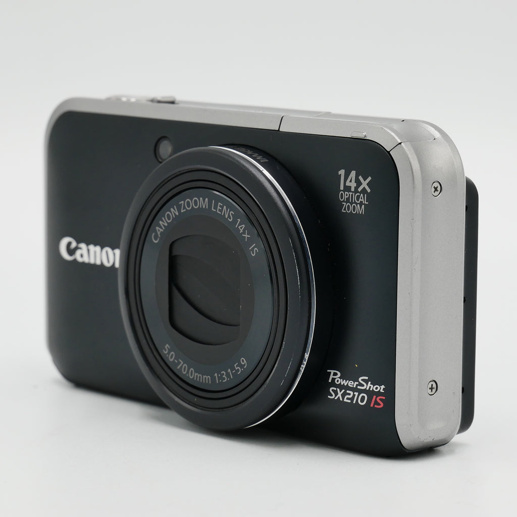 The Canon PowerShot SX210 IS is a sophisticated and highly portable "travel zoom" digital camera that packs a powerful long-range lens into a slim, pocket-friendly chassis. Featuring a 14.1-megapixel CCD sensor and the DIGIC 4 image processor, the SX210 IS produces high-resolution images characterized by vibrant colors and fine detail. Its sleek, metallic black finish and ergonomic design make it an attractive and capable companion for travelers who want the flexibility of a wide zoom range without the bulk of a traditional DSLR or bridge camera.
