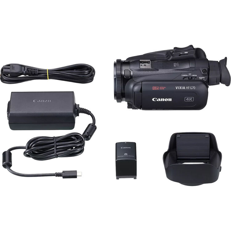 | In The Box | Canon Vixia HF G70 UHD 4K Camcorder (Black), Canon PD-E1 USB Power Adapter,, Canon BP-820 Lithium-Ion Single Battery Pack (1780mAh, Retail Packaging), Lens Hood with Lens Barrier, Lens Cap |