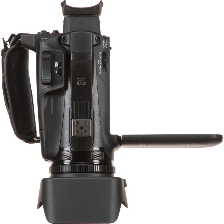 Record high-resolution 4K video with the compact, black Canon Vixia HF G70 4K Camcorder. The G70 features the same form factor and many of the great specs of the G50, including a 1/2.3" UHD 4K CMOS sensor, a DIGIC DV 6 image processor, an 8-blade circular aperture, 5-axis image stabilization, a 20x optical zoom in 4K, and recording up to UHD 4K30 resolution. This streamlined model features a larger 3.5mm LCD capacitive touchscreen display, a higher resolution tiltable 0.36" OLED EVF, recording only in MP4 format, and fast USB-C video-only output with UVC support for live streaming to a computer.