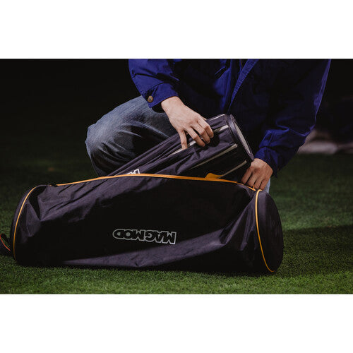 Quickly stow your gear after a shoot with the MagMod Compact Case. Designed with a collapsible form factor, this travel-friendly case provides a convenient way to carry and protect your equipment. Measuring 11.5 x 11.8 x 4.3", it offers ample space to hold a MagBox Pro 36" Strip or MagBox Pro 42" Octa. Built from weather-resistant materials, it helps shield your gear from rain and the elements. A zippered closure ensures fast access while adding extra protection during transport.