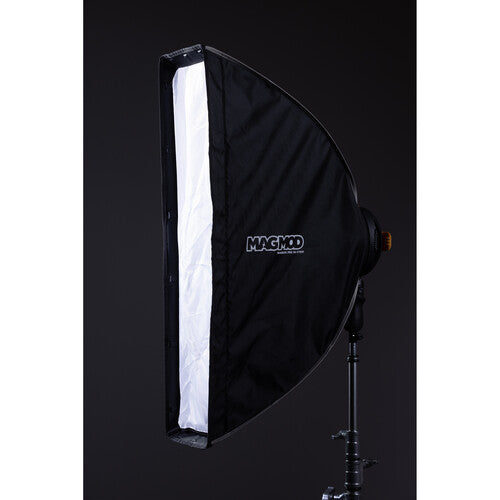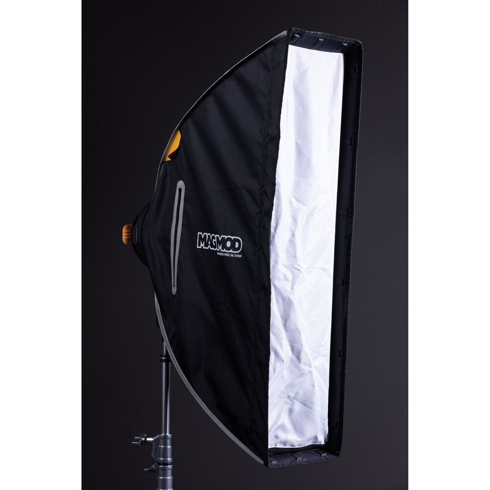 Designed for portrait and product photographers, this MagBox Pro 36" Strip from MagMod provides a uniquely soft light for your speedlights or strobes. The strip has time-saving features including a super-fast zip-on diffuser and a built-in storage pocket. It makes switching back and forth between small and large modifiers in the MagMod system a breeze. An integrated gel slot is provided for changing the color of your light and an optional magnetic grid lets you narrow the beam spread and control light spill. The MagBox Pro 36" Strip offers the softness you are looking for in a portable package for shooting on location or in the studio. This light modifier provides a portable illumination solution in a package that can be quickly set up and taken down. A versatile and user-friendly softbox, it's never been easier to create beautiful edge, rim, key, or fill light.