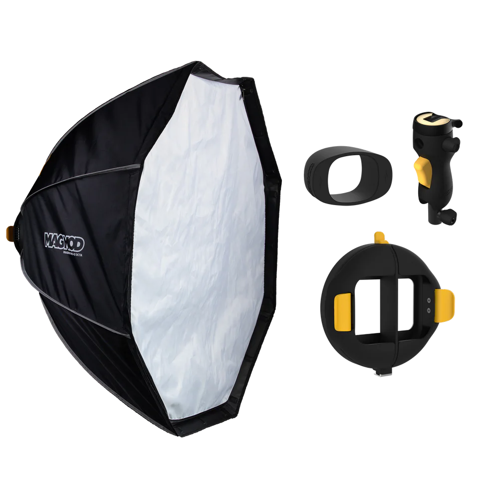 Your speedlights and strobes will distribute soft and flattering light with this MagBox Pro 42" Octa from MagMod. An easy-to-use light modifier, it features the popular octa shape with a silver interior and includes a quick and efficient zip-on diffuser. An integrated gel slot is provided for changing the color of your light and an optional magnetic grid lets you narrow the beam spread and control light spill. This large softbox gives you the light you are looking for in a package that quickly sets up and tears down. This versatile tool makes switching back and forth between small and large modifiers in the MagMod system a breeze. It features a lightweight and rip-stop shell for extra durability. With a softbox this user-friendly, it's never been easier to shine soft and beautiful light on your subjects.