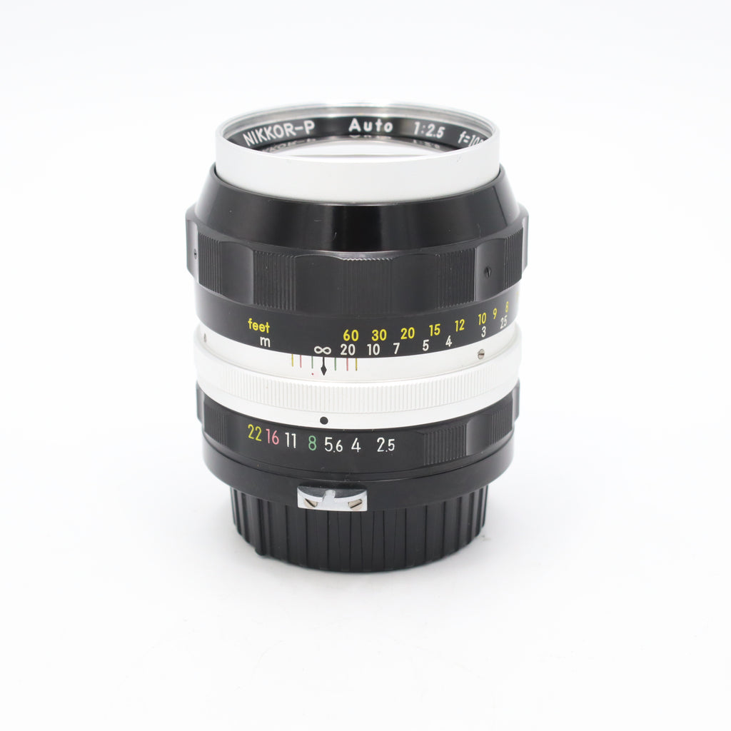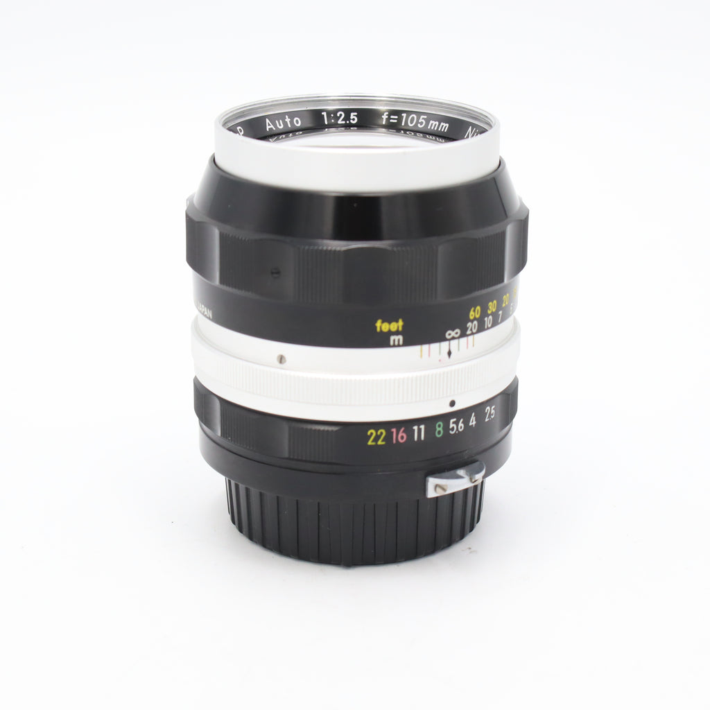 The Nikon 105mm f/2.5 NIKKOR‑P is a classic manual‑focus telephoto prime revered for its smooth rendering, flattering perspective, and solid optical performance. Originally introduced in the early 1960s for Nikon’s range of F‑mount film cameras, this lens features a Sonnar‑derived design that delivers pleasing contrast, smooth out‑of‑focus areas, and dependable sharpness—especially when stopped down slightly. Its f/2.5 maximum aperture offers good low‑light capability and subject isolation, while the solid, all‑metal construction reflects Nikon’s vintage craftsmanship. Ideal for portraits, short telephoto work, and film‑lens enthusiasts, this optic remains a sought‑after piece of classic Nikon glass.