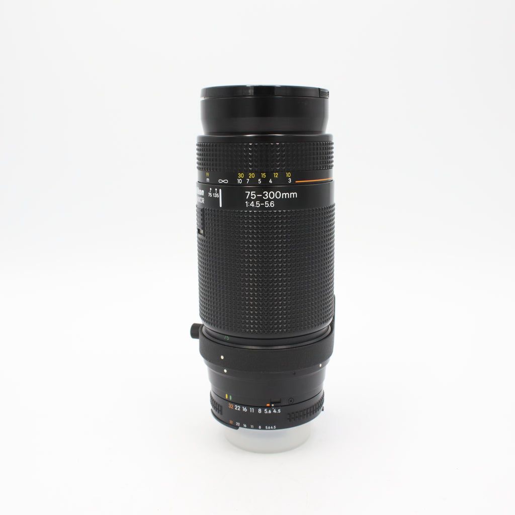 The Nikon AF NIKKOR 75-300mm f/4.5-5.6 is a versatile and long-reaching telephoto zoom lens designed for Nikon F-mount SLR cameras, offering compatibility with both 35mm film bodies and modern digital SLRs. Covering an expansive 4x zoom range, this lens is ideally suited for photographers requiring extended reach for subjects like sports, wildlife, and distant landscapes, making it a highly useful tool for capturing action from a distance. Its optical design, which typically includes an element to minimize spherical aberration, is engineered to deliver crisp, high-contrast images across the telephoto spectrum, ensuring reliable performance in bright light conditions.