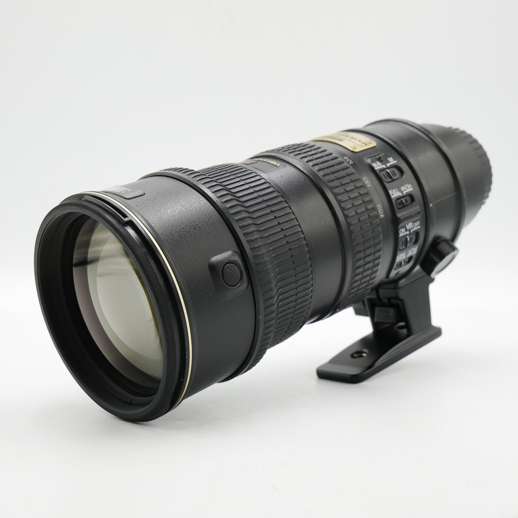 The Nikon AF-S VR Zoom-NIKKOR 70-200mm f/2.8G IF-ED is a legendary professional telephoto zoom lens that has long been a staple in the kits of sports, wildlife, and portrait photographers. Built for Nikon F-mount cameras, this lens is defined by its constant f/2.8 maximum aperture, which provides exceptional low-light performance and consistent exposure settings throughout the entire zoom range. As a professional "Gold Ring" NIKKOR lens, it features a rugged, weather-sealed construction designed to withstand the rigors of heavy daily use in demanding environments.