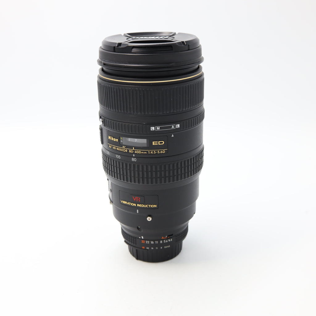 The Nikon AF VR Zoom-NIKKOR 80-400mm f/4.5-5.6D ED Lens is a versatile telephoto zoom lens designed for Nikon F-mount cameras, ideal for wildlife, sports, and action photography. This lens features Nikon's Vibration Reduction (VR) technology, which minimizes camera shake and allows for handheld shooting even at longer focal lengths, ensuring sharp and clear images. The lens's optical construction includes Extra-low Dispersion (ED) glass elements, which help to reduce chromatic aberrations and deliver high-contrast images with superb color accuracy. With a focal length range of 80-400mm, this lens offers excellent reach, making it perfect for capturing distant subjects. The lens also has a fast and accurate autofocus system, with a focus limit switch to further enhance focusing speed. The rugged build quality ensures that the lens can withstand the rigors of outdoor shooting.