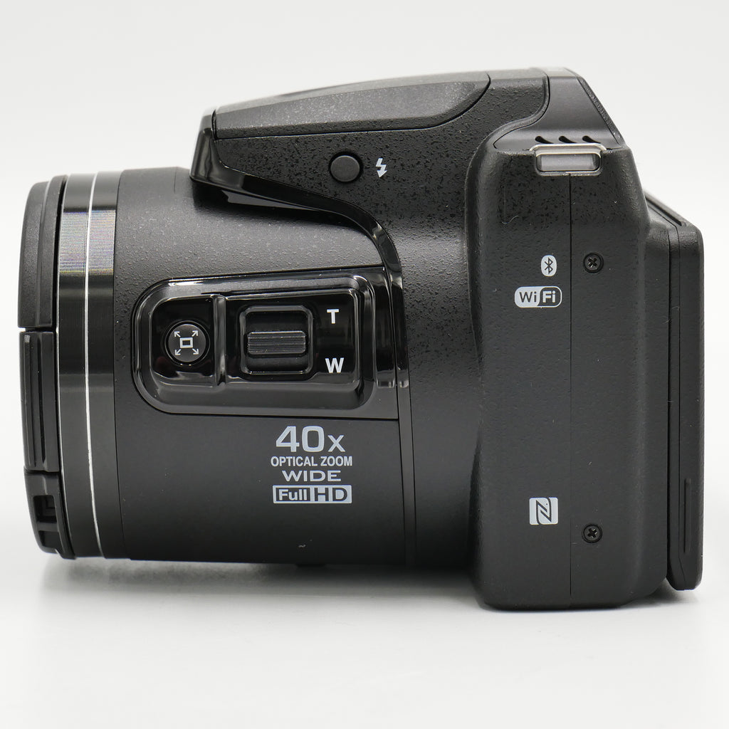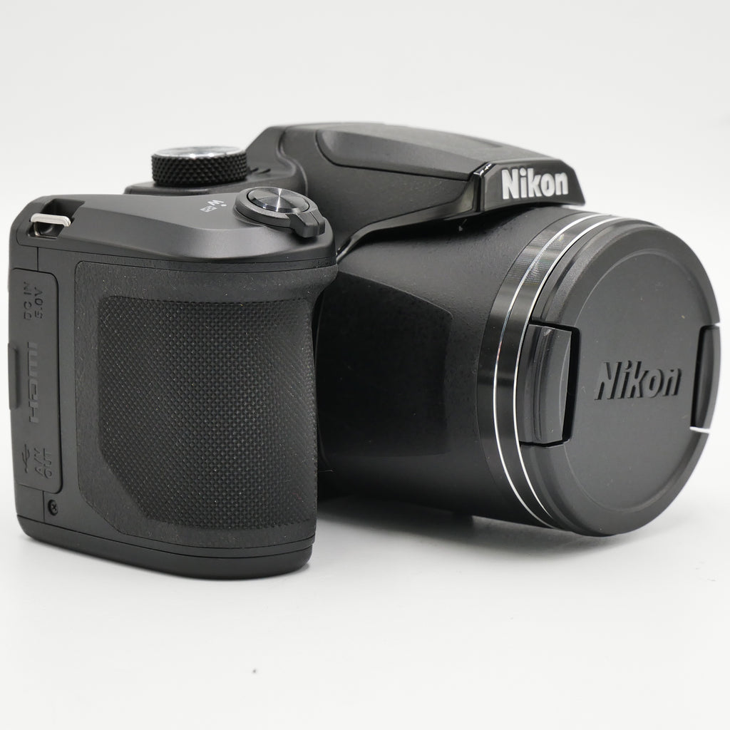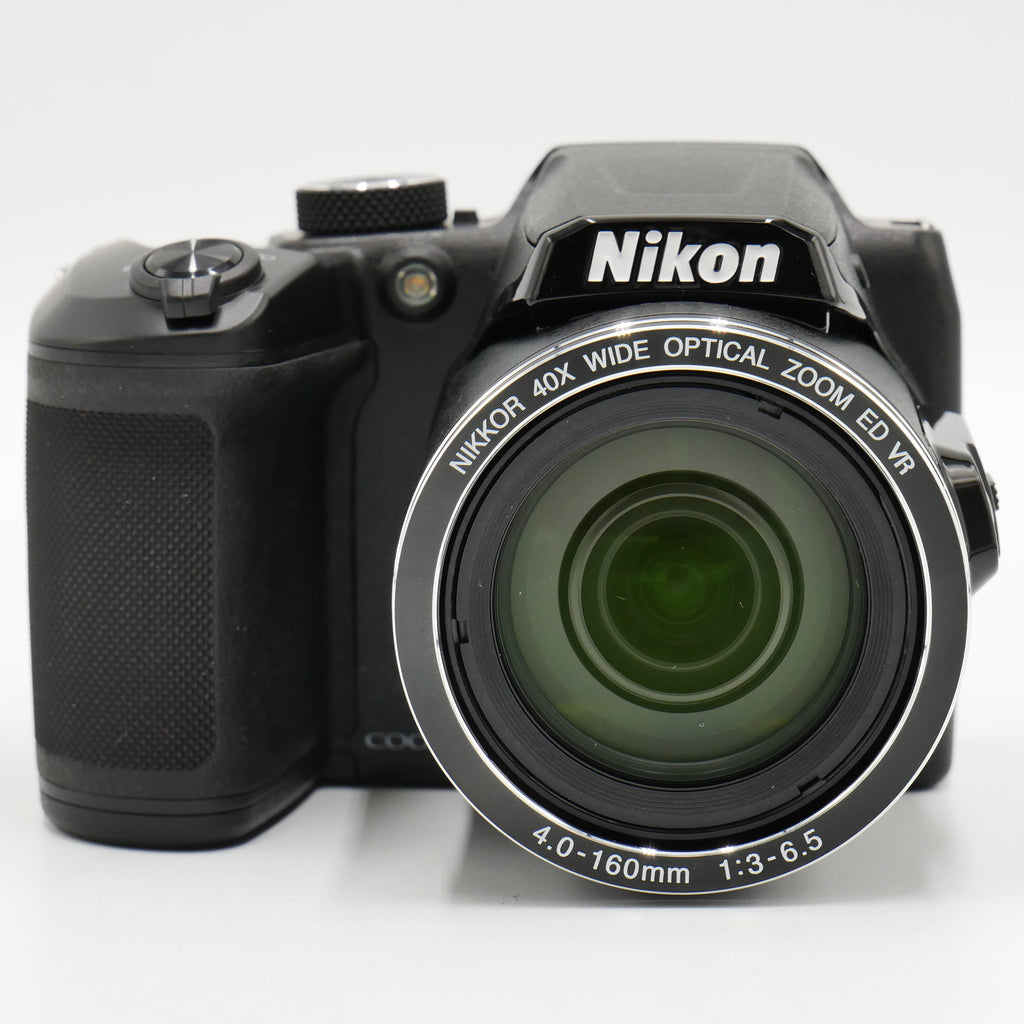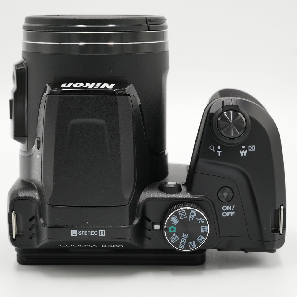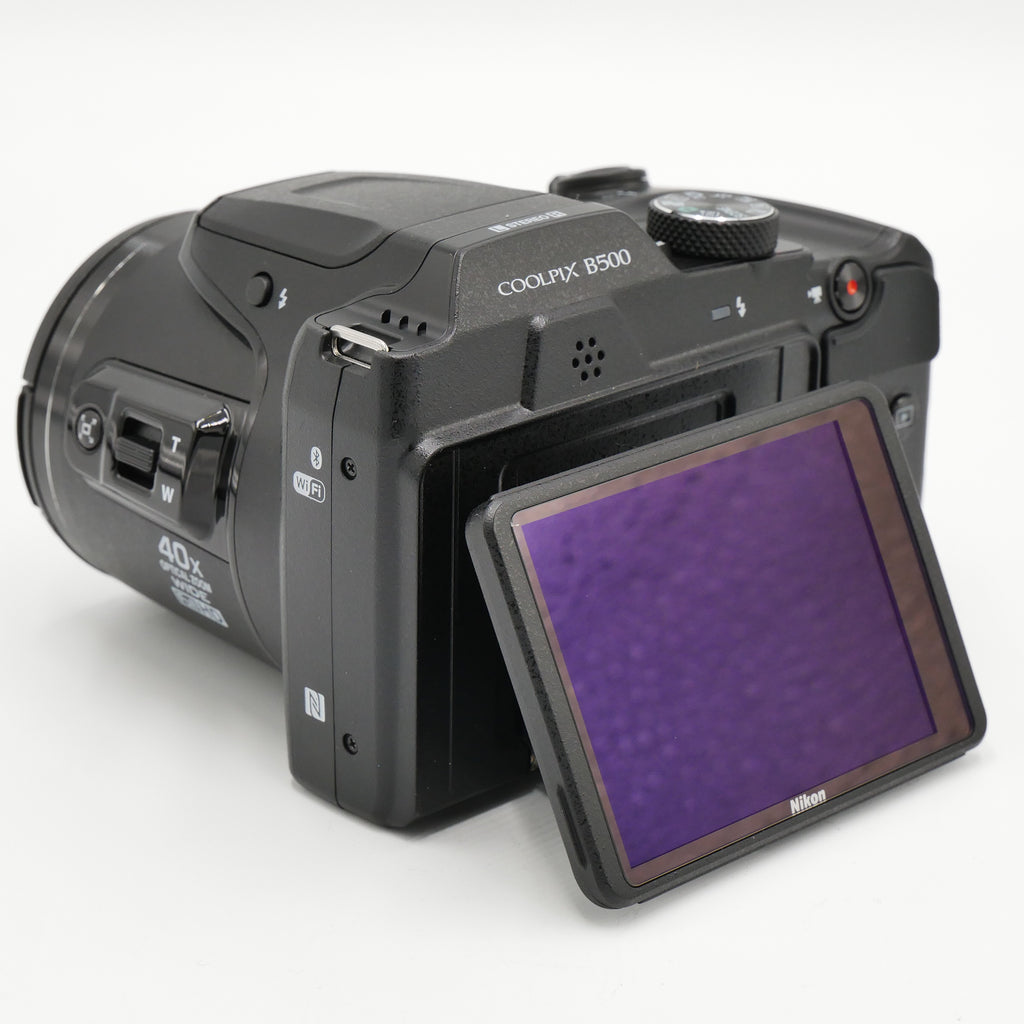 The black COOLPIX B500 Digital Camera from Nikon features a 16MP 1/2.3" BSI CMOS sensor for high-resolution imagery as well as Full HD 1080p video. This sensor's construction utilizes a stacked backside-illuminated design to improve clarity and image quality when working in dimly-lit conditions. The 40x optical zoom lens provides a 35mm equivalent focal range of 22.5-900mm, covering wide-angle to telephoto perspectives to suit working in a wide variety of environments. Further subject magnification can be achieved using the 80x Dynamic Fine Zoom that effectively doubles the camera's reach. The lens also features Vibration Reduction to help reduce the appearance of camera shake when shooting at the longer zoom lengths or with longer shutter speeds. A 3" 921k-dot tilting LCD screen allows image composition from unique angles, as well as image review and menu navigation.