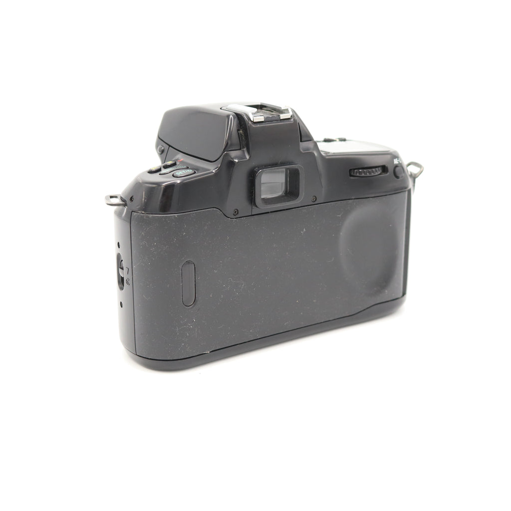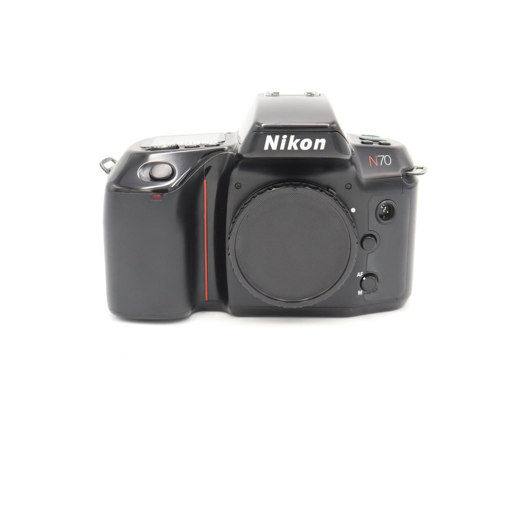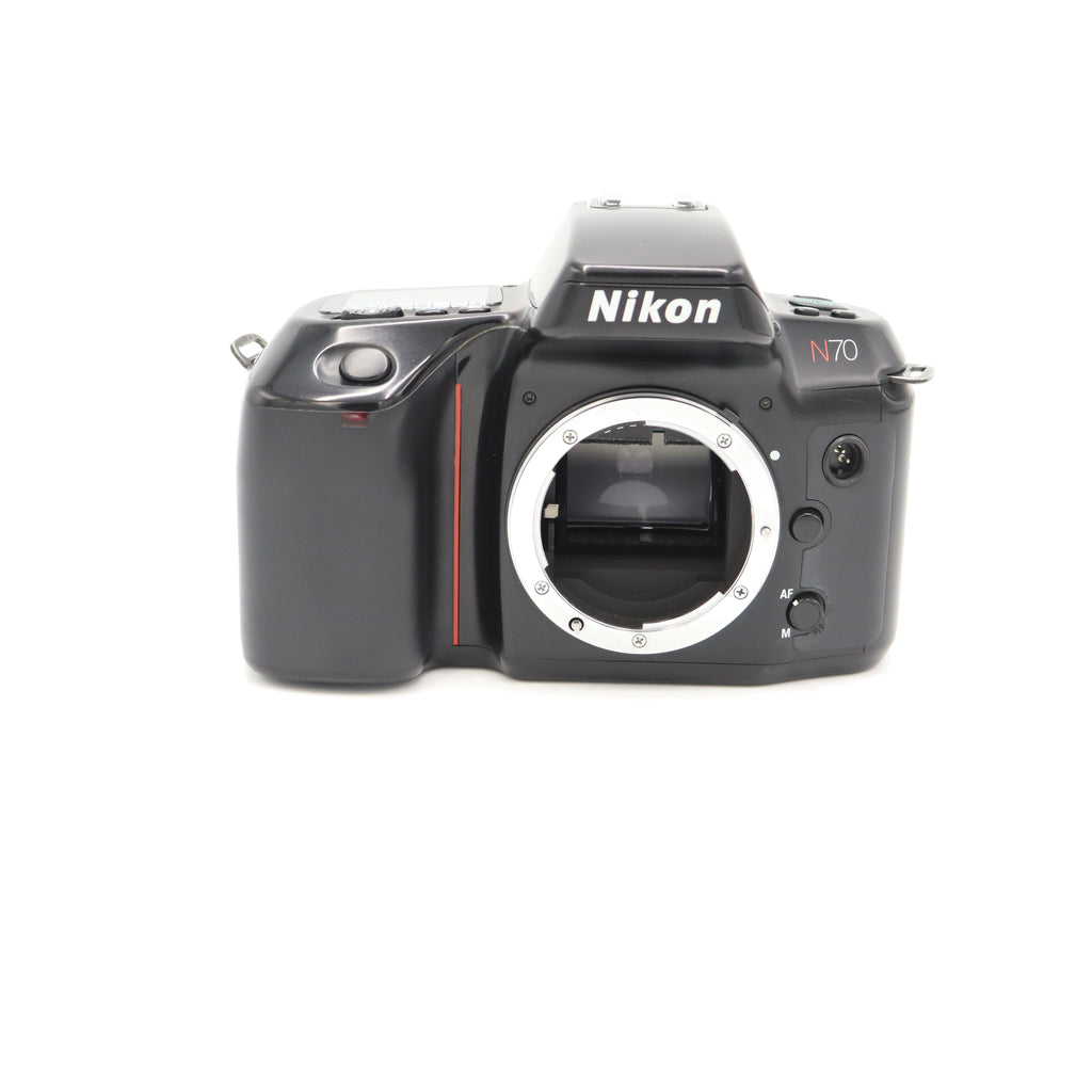 This is a clean, well-cared-for example of the Nikon N70. It's in excellent condition overall, both cosmetically and functionally. The one thing to note, which is a common issue with this model, is the sticky back. This is a result of the rubberized coating on the film door breaking down over time. It's a known cosmetic issue and does not affect the camera's performance. Mechanically, the camera is flawless. The autofocus is quick, the shutter is responsive, and all the unique controls and menus operate as they should. The film advance is smooth, and the LCD is clear. This is a great camera for someone who appreciates Nikon's build quality and wants a more advanced film body without the weight of a professional model. It’s ready to go and will produce excellent results.