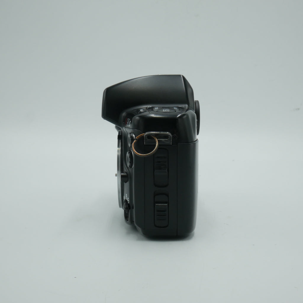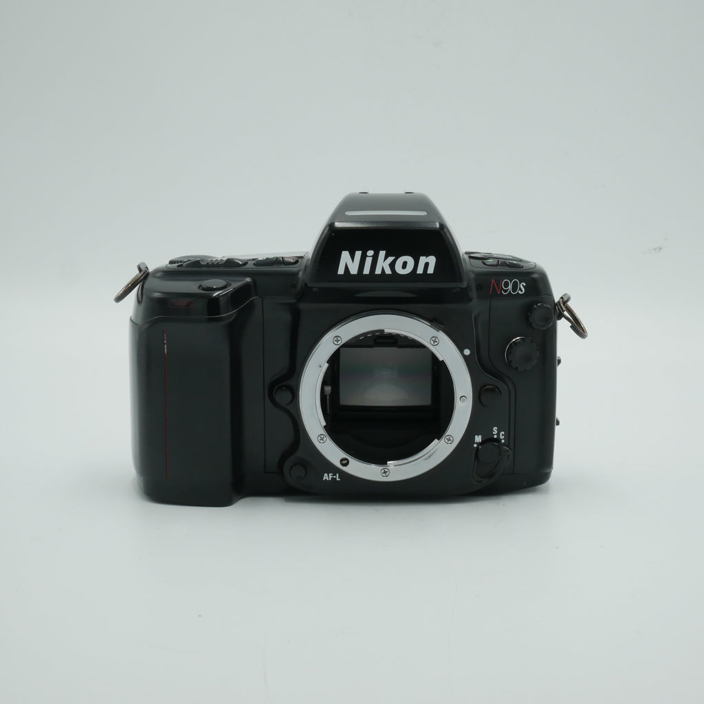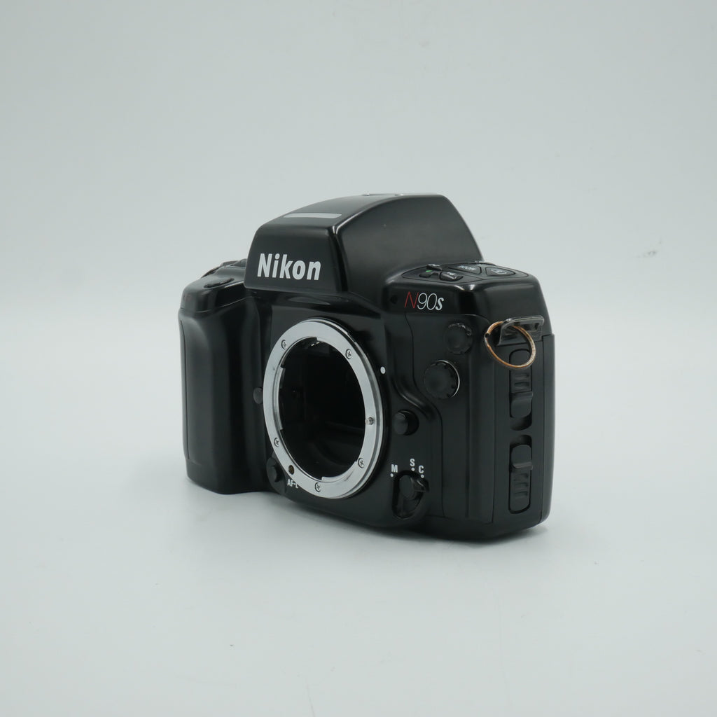 The Nikon N90s (also known as the F90X outside North America) is a rugged, professional-grade 35mm autofocus SLR that was a favorite among serious photographers in the 1990s. Built with a durable magnesium and plastic body, it offers advanced features like 3D Matrix metering, fast and accurate autofocus, and compatibility with a wide range of Nikon F-mount lenses. The shutter maxes out at 1/8000 second and supports flash sync up to 1/250 second, with a top continuous shooting speed of 4.1 fps. With its dependable build and flexible shooting modes, the N90s remains a solid choice for those who want pro-level film performance without frills.