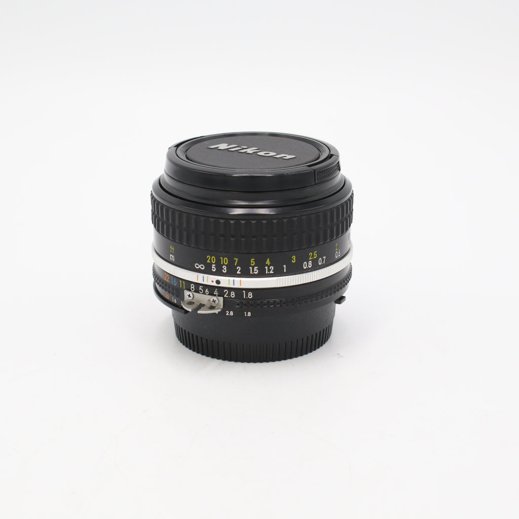 The Nikon Nikkor 50mm f/1.8 AI is a classic, compact manual-focus prime lens offering a true normal perspective on full-frame Nikon F-mount film and DSLR cameras. With its bright f/1.8 maximum aperture, it’s a versatile all-around optic suitable for portraits, street photography, travel, and everyday shooting. The simple yet reliable optical design produces sharp images with pleasing contrast, while the smooth manual focus action and solid build quality reflect Nikon’s legacy in mechanical lens craftsmanship. Its small footprint and lightweight feel make this a favorite for film enthusiasts and photographers who enjoy hands-on control.