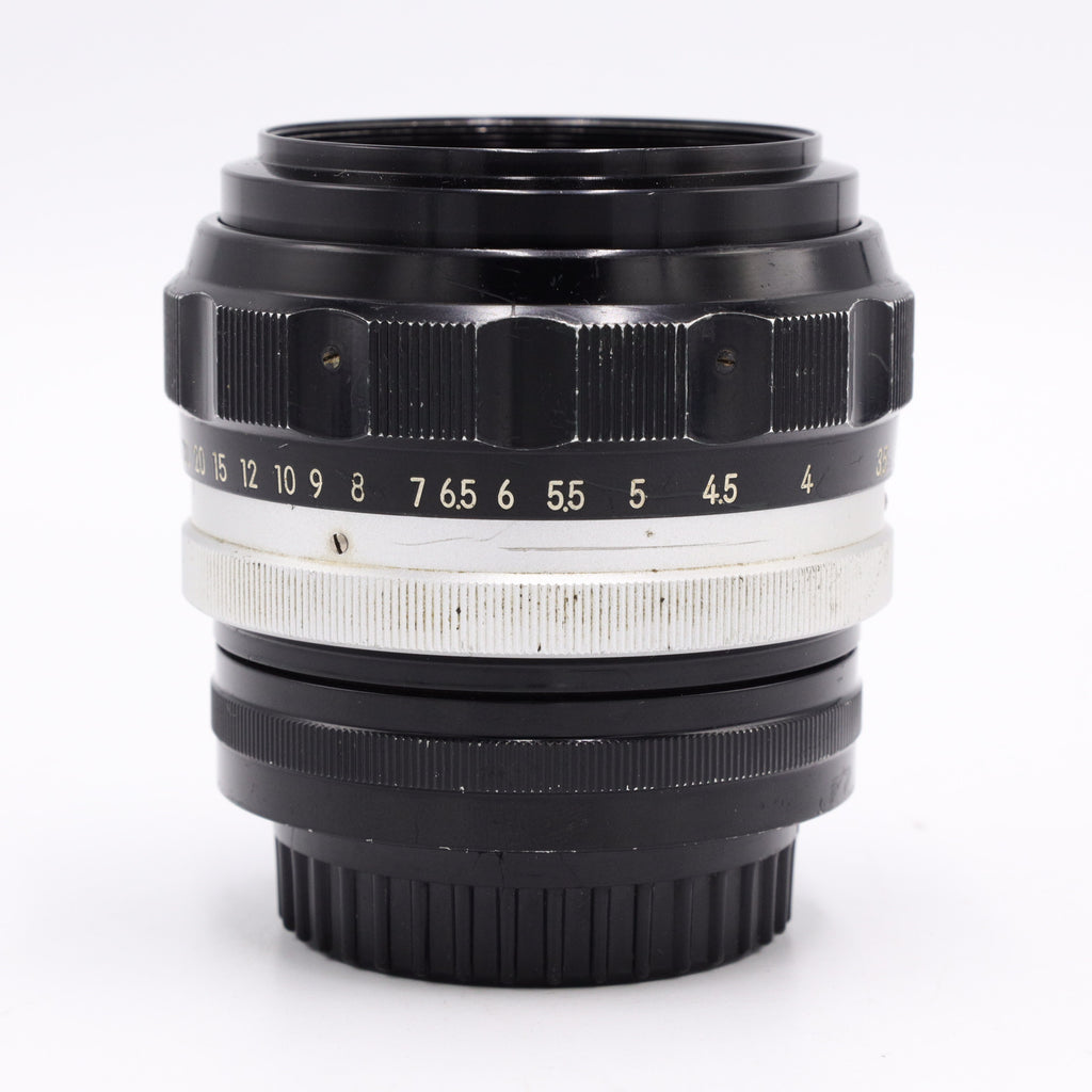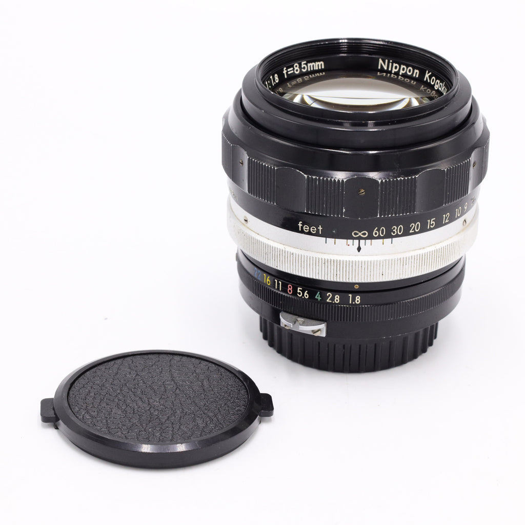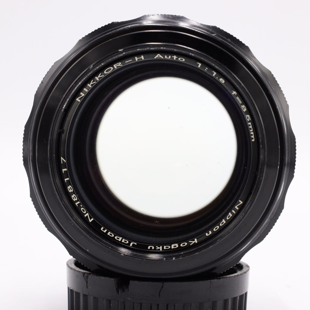 The Nikon NIKKOR-H Auto 85mm f/1.8 is a legendary short-telephoto prime lens that holds a special place in the history of portrait photography. Released in the mid-1960s, the "H" in its name stands for "Hexa," indicating a sophisticated six-element optical design. This was Nikon's premier portrait lens for the F-mount system before the transition to the more common 85mm f/2 and later f/1.4 variants. It is widely celebrated for its "Sonnar-style" rendering, which combines a sharp central subject with a smooth, painterly background blur that digital-era lenses often struggle to replicate.
