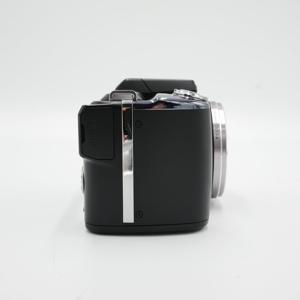 Designed for ease of use and portability, the camera features a relatively compact, lightweight body with a pronounced handgrip for secure handling. It is notably powered by four AA batteries, a feature highly valued by travelers and field photographers who prefer the convenience of using readily available power sources over proprietary rechargeable packs. The rear of the device is dominated by a 3.0-inch LCD screen used for framing shots and navigating the simplified control layout, which favors an intuitive "point-and-shoot" experience while still offering access to advanced tools like a live histogram for exposure monitoring.