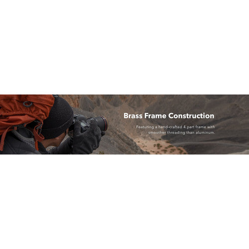 The quartz glass is set within a brass filter ring with side knurlings. Together, the brass material and knurlings prevent jamming and provide additional strength, as well as a textured grip when mounting or removing this filter from a lens.