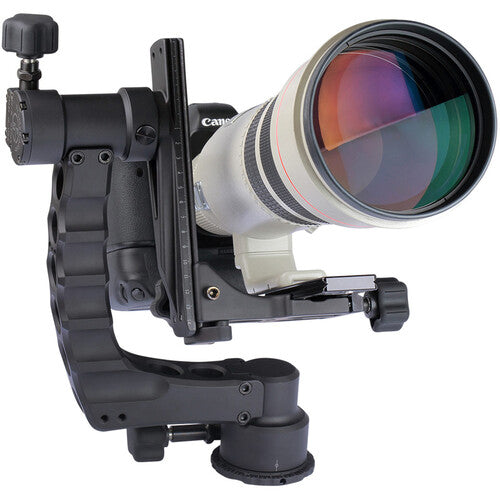 The Katana Professional Gimbal Head from ProMediaGear is engineered to deliver smooth, stable support for heavy camera setups, handling loads of up to 150 lb—ideal for long telephoto lenses. Its Arca-Swiss type clamp ensures secure plate attachment, while independent locking and adjustment mechanisms let you fine-tune friction without compromising stability. With its balanced design, you can reposition your camera and lens smoothly with one hand and maintain balance without constant tightening.