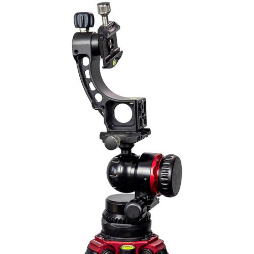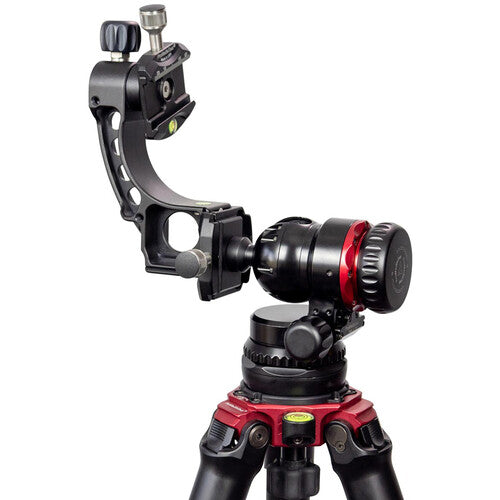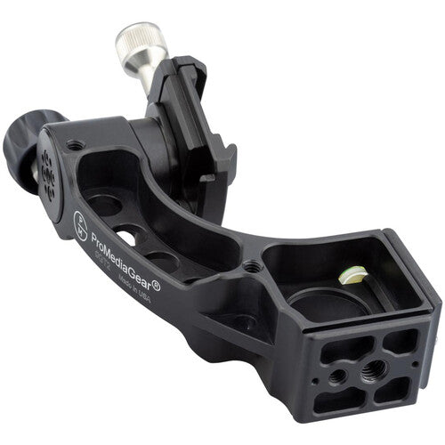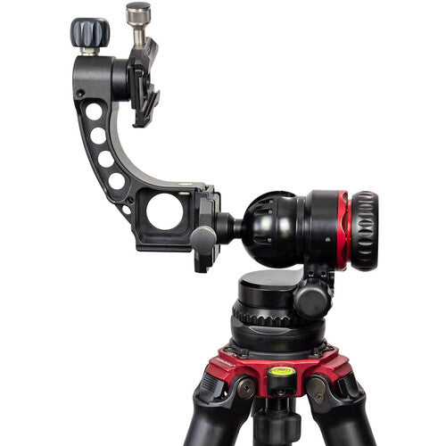 The ProMediaGear GT2 Tomahawk V2 Gimbal Head Attachment is designed to mount onto Arca-type ball heads, transforming them into a versatile gimbal setup ideal for telephoto lenses. Featuring dual built-in Arca-type dovetails at its base, the GT2 easily secures to compatible ball heads, while the top-mounted Arca-type clamp with a quick release plate ensures fast and secure lens attachment. Long telephoto lenses can be connected directly using an Arca-type tripod foot or an attached quick release plate.