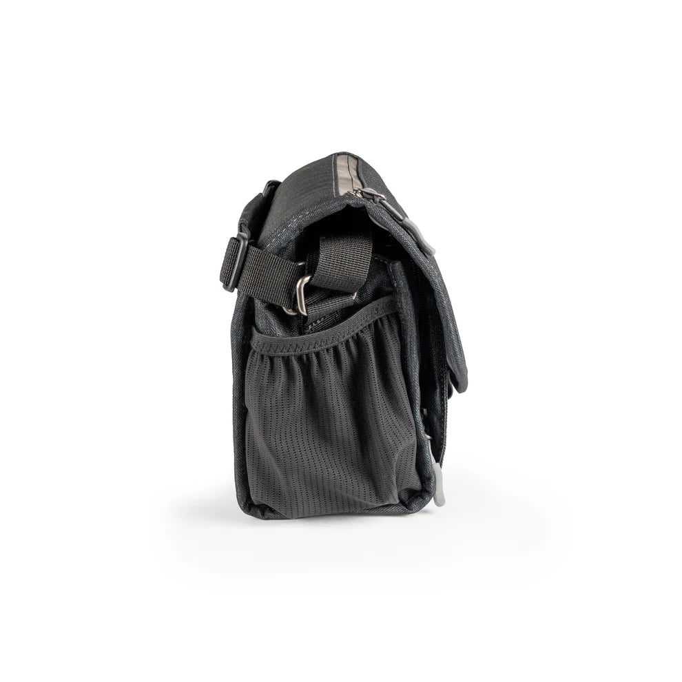Breathable, stretch-mesh side pockets provide a quick-stash solution for damp or quick-access items, keeping them separate from your gear while allowing airflow to dry them. An additional zippered back compartment offers space for flat items such as filters, a trail map, or a cable release. There's also a trolley strap on the back, so you can slide the bag securely over your luggage handle during travel.
