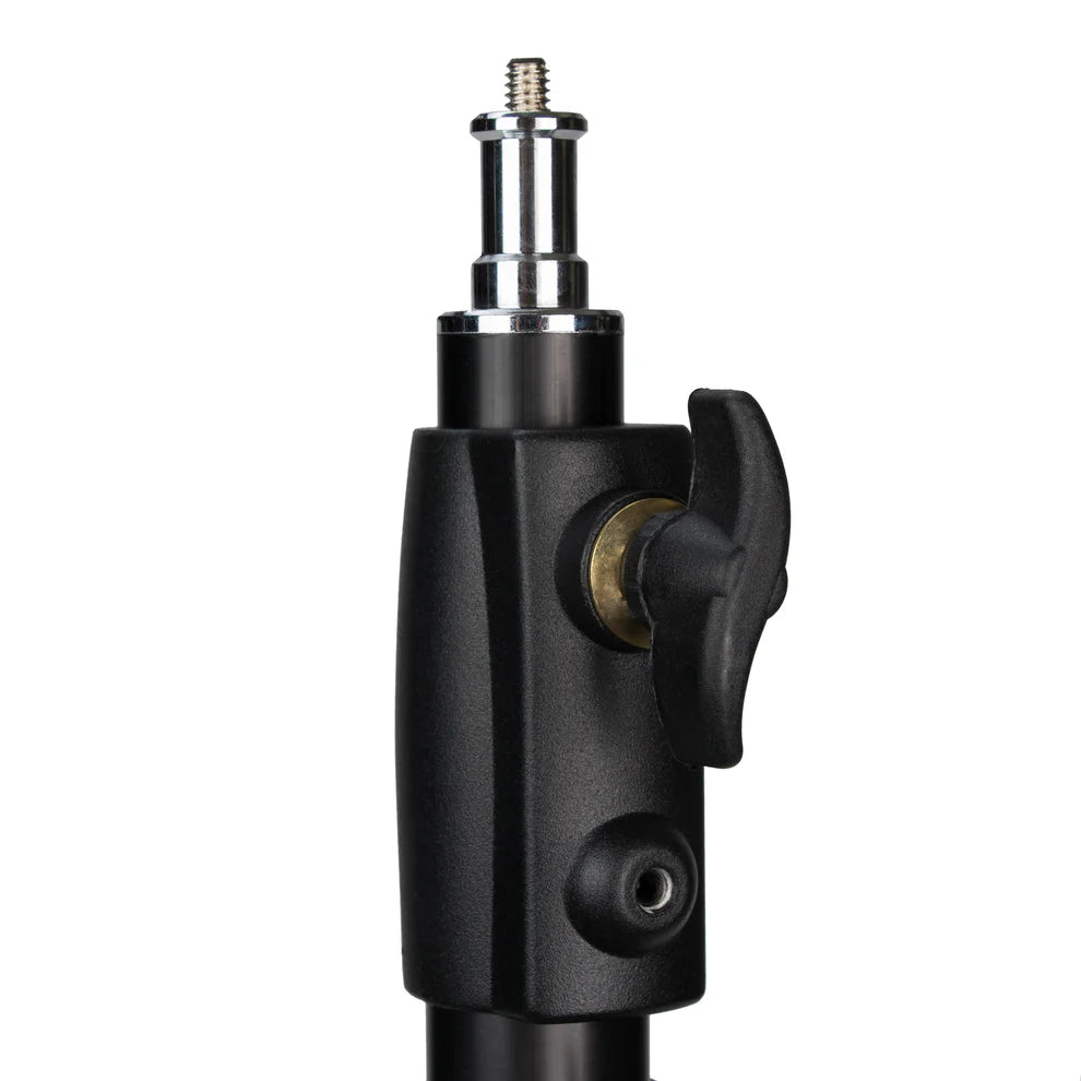 The LS4 Air Stand is constructed of lightweight yet strong aluminum. It uses a reliable air cushioning system in all column riser sections to prevent accidental 'falling' of a light. The column locks are strong and keep their adjustment over time. And the flat black finish will avoid unwanted / unexpected glare and highlights during a shoot.