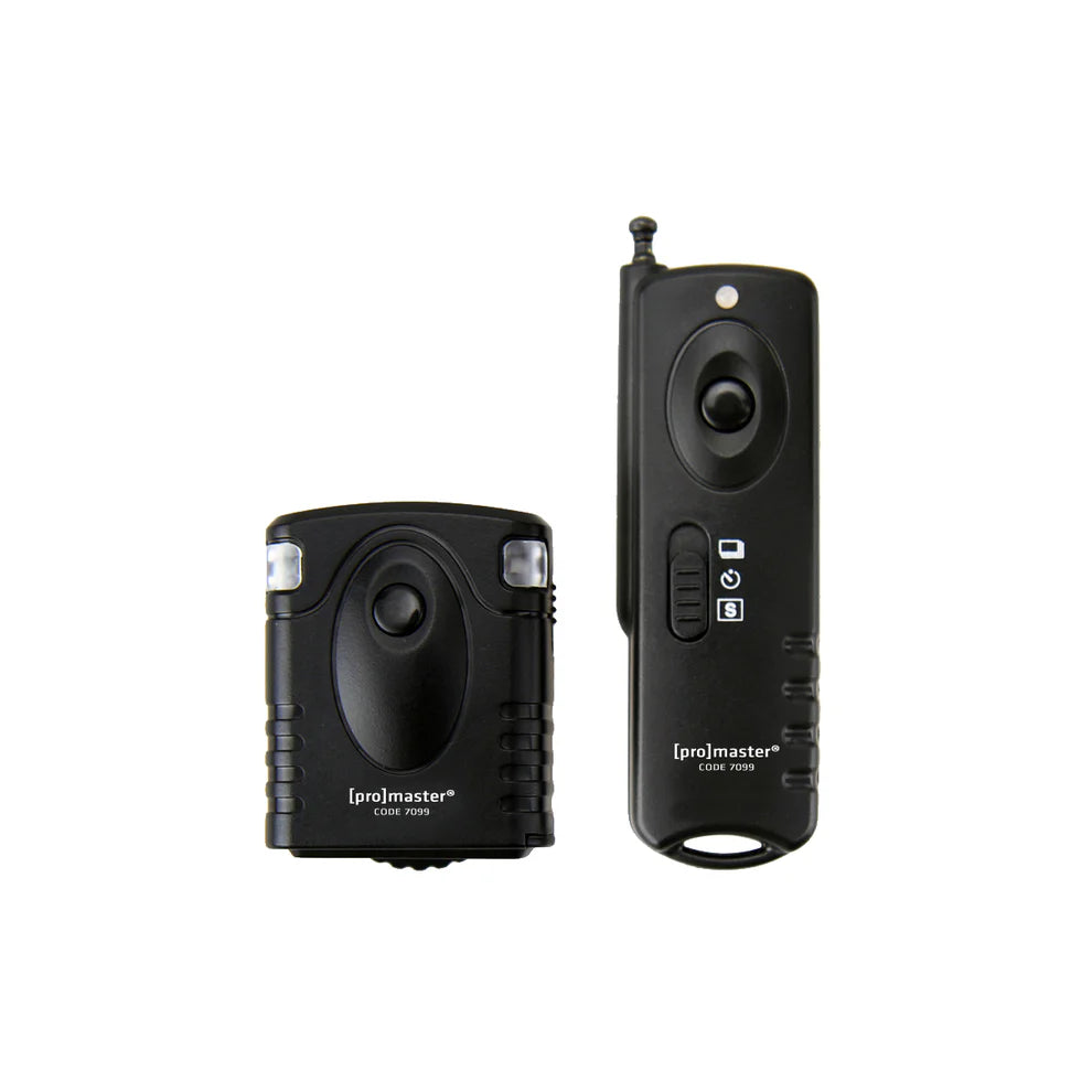 The ProMaster Wireless Remote Shutter Release uses Radio Frequency (RF) to trigger the shutter release of the camera. By using RF, you can trigger your camera from up to 100' away and without a line-of-sight limitation. The ProMaster Wireless Remote Shutter Release allows you the freedom to operate your camera's shutter without having to touch or be near your camera. Unlike wireless infrared, this RF remote does not require line of sight to the camera and is not subject to adverse lighting conditions. Requires the purchase of a ProMaster Camera Release cable for your camera model.