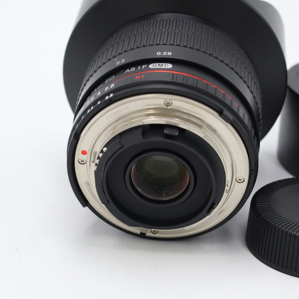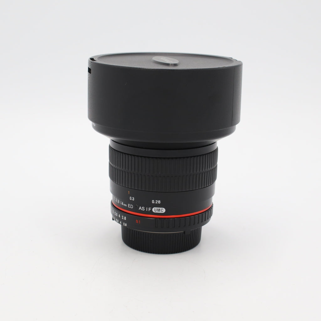 The Samyang 14mm f/2.8 ED AS IF UMC is an ultra-wide, manual-focus prime designed for Nikon F-mount cameras, offering an expansive field of view and strong optical performance for landscapes, architecture, astrophotography, and creative wide-angle work. Its optical design includes an extra-low dispersion (ED) element and aspherical (AS) elements to help reduce chromatic aberrations and distortion, while the Ultra Multi-Coating (UMC) minimizes flare and ghosting in challenging lighting. The manual focus control is smooth and predictable, and the rugged build reflects Samyang’s tradition of offering value-oriented lenses with distinctive character.