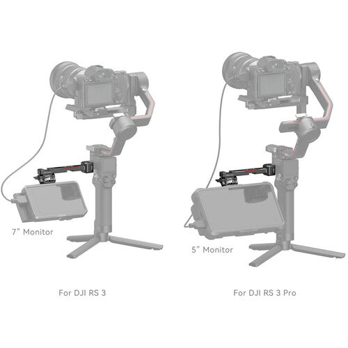 Via a built-in NATO mount, this SmallRig Monitor Mount attaches to the NATO rail on the side of your DJI RS 2, RSC 2, RS 3, RS 3 Pro, RS 3 Mini, RS 4, or RS 4 Pro gimbal and provides multiple mounting options for expanding your gimbal on either side, in a quick release solution. It can rotate 165° to ensure the right position for your monitor.