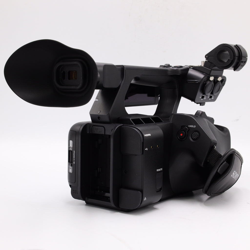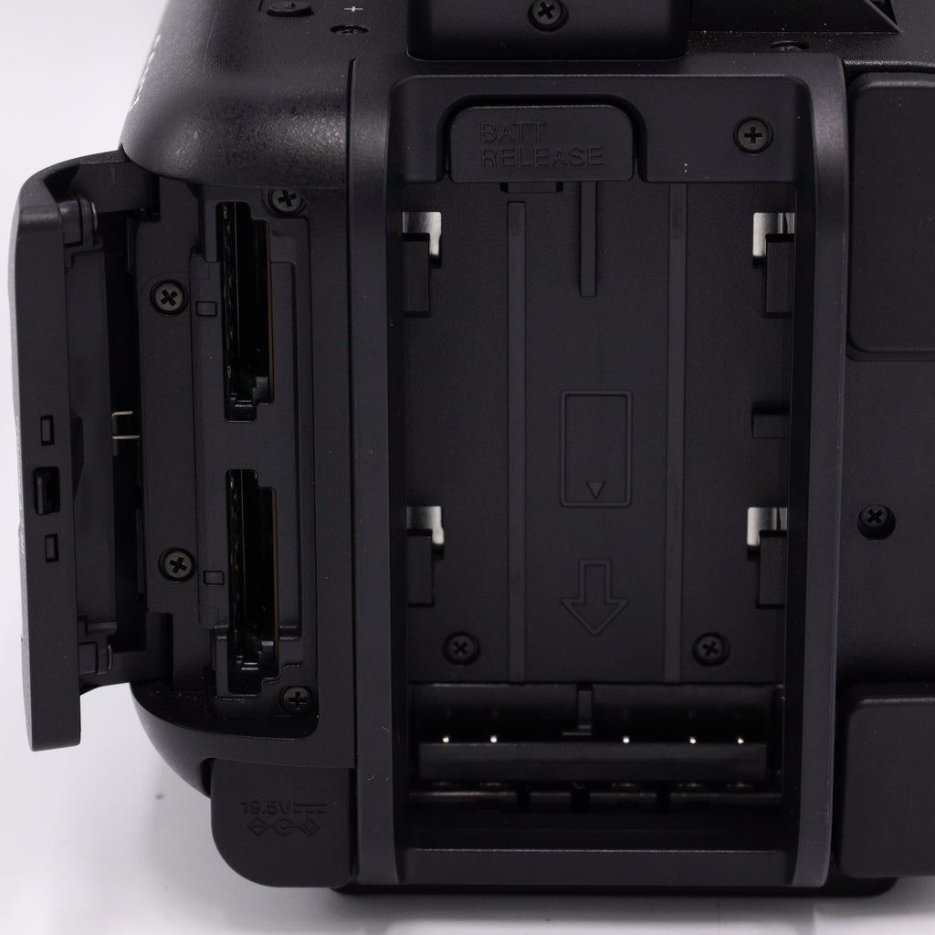 This camcorder's interface includes HDMI, USB-A, USB-C, LAN, REMOTE, and additional connectors.
