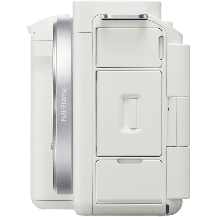 Designed as a professional photo+cinema camera for content creators to up their game, the ultra-compact white Sony ZV-E1 Mirrorless Camera provides cinematic looks to your vlogs, interviews, and product demonstrations. With an even smaller form than the EV-10 and the cinema-style inner-workings of the a7S III, the ZV-E1 features a full-frame 12MP Exmor R CMOS sensor and a BIONZ XR image processor to offer stunning cinema looks in a tiny, mobile form. Its full-frame E-mount makes it one of the smallest cameras with an interchangeable lens mount around. Some of the benefits of the ZV-E1 include a cinematic bokeh, 15+ stops of dynamic range, 5-axis stabilization, AI-based auto-framing, AF assist, multiple mic options, USB streaming, a dust and moisture resistant housing, and more.