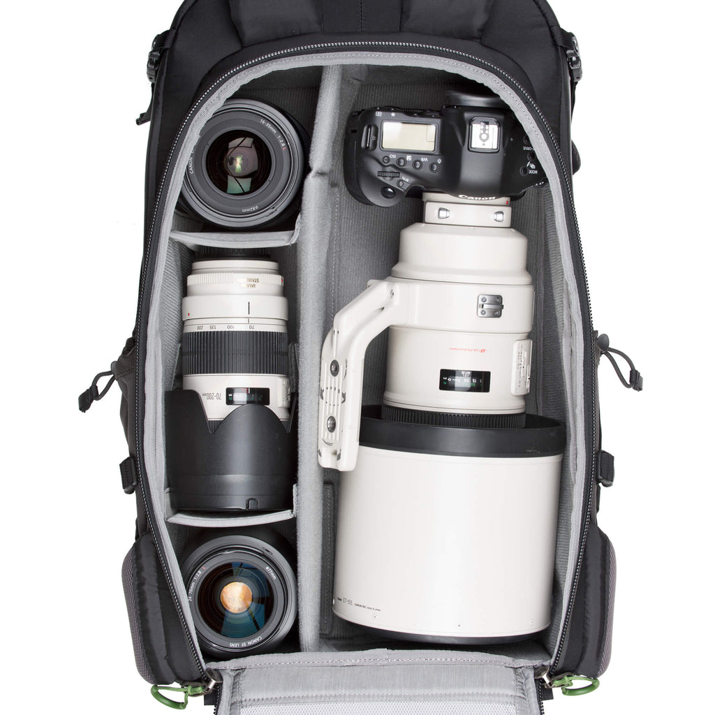 - Adjustable dividers for large telephoto lenses, traditional photo gear, or personal items