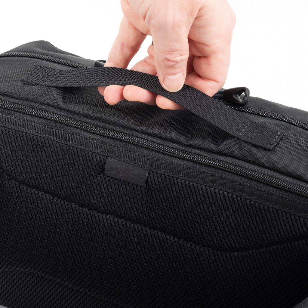 - Sling bag shoulder strap with optional tuck-away stabilizer belt