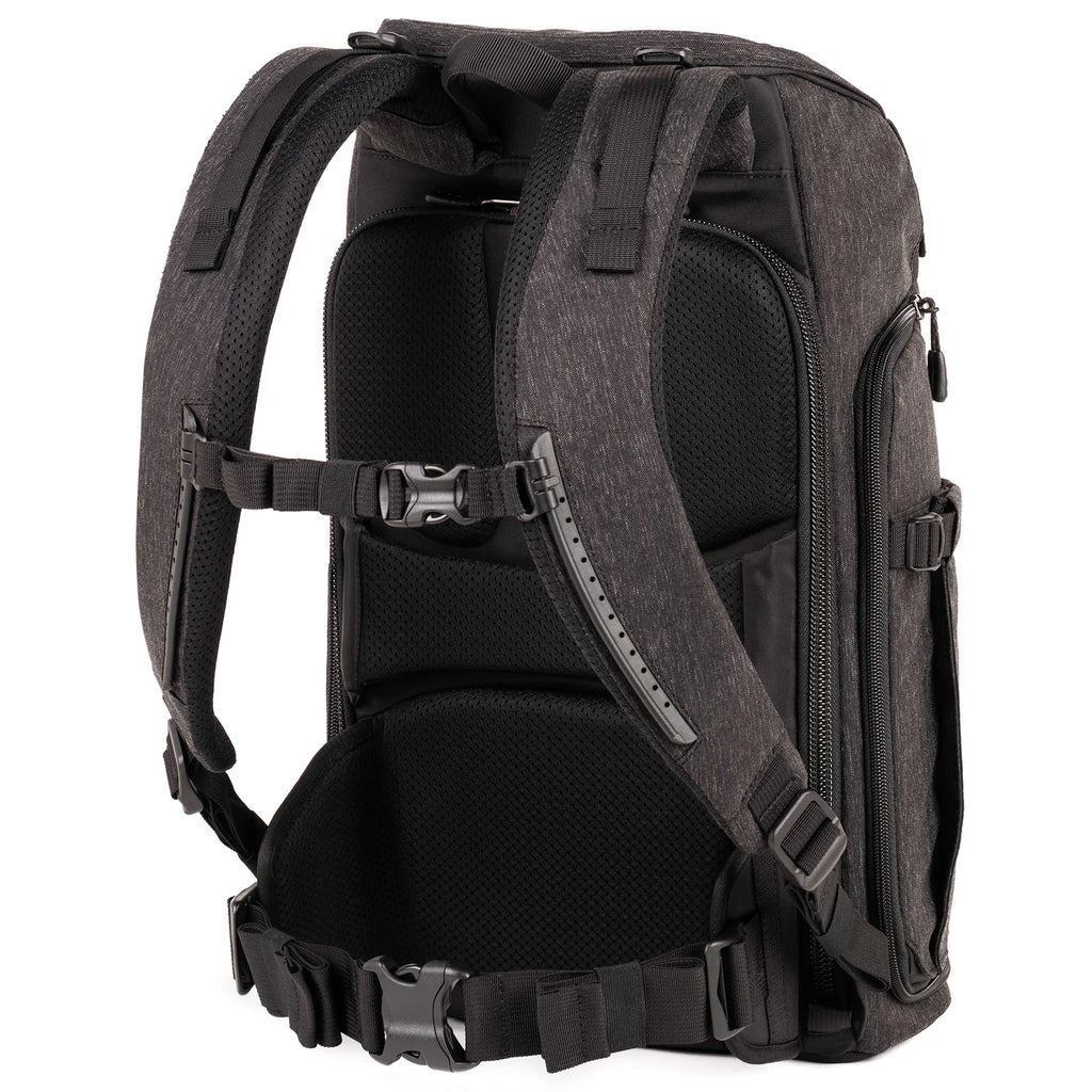Access panels on both sides enable you to sling the backpack left or right, while the rear-panel provides complete access to your gear when working directly out of the bag. Plus, the center tripod mounting system balances even large tripods securely while still allowing access to your gear. And of course, the harness is padded and shaped for all day comfort.